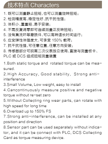 檢測(cè)電動(dòng)機(jī)、內(nèi)燃機(jī)等旋轉(zhuǎn)動(dòng)力設(shè)備,輸出扭矩及功率;檢測(cè)各種機(jī)械加工中心、自動(dòng)機(jī)床的工作過程中的扭矩;檢測(cè)各種旋轉(zhuǎn)動(dòng)力設(shè)備系統(tǒng)所傳遞的扭矩及效率;可用于制造粘度計(jì)、電動(dòng)、氣動(dòng)、液力扭力扳手;